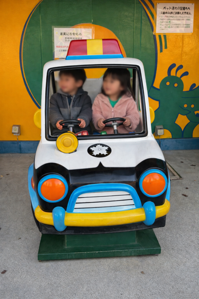 園内には50円で動く乗り物が並んでいます。パトカーに消防車。「50円なら実質無料みたいなもんだな」と、FP3級の知識をドブに捨てるような甘い計算をしたのが運の尽き。