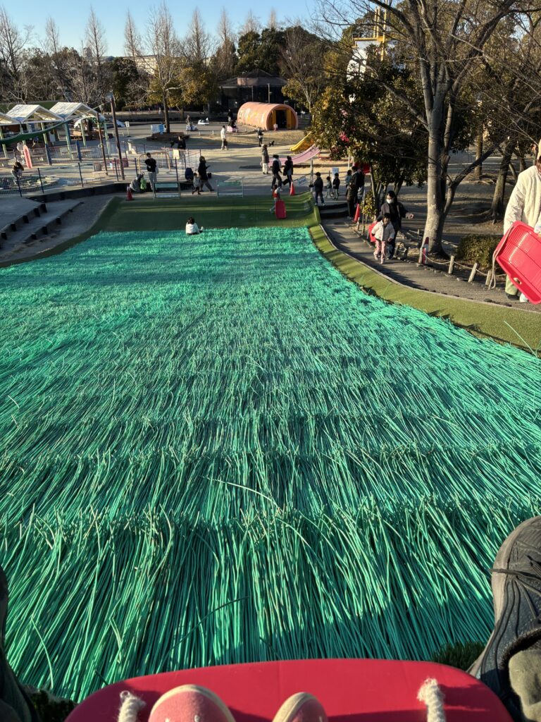 よく滑るし、本物の芝ではないので服のダメージも少ない。親の同伴OK(大人単体はNG)なので、童心に帰って子供と一緒に滑りました。